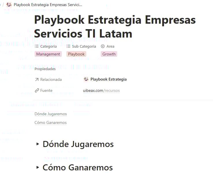 Aqui puedes acceder al Playbook de Estrategia encontrarás plantillas y frameworks listos para aplicar en tu empresa de servicios IT.